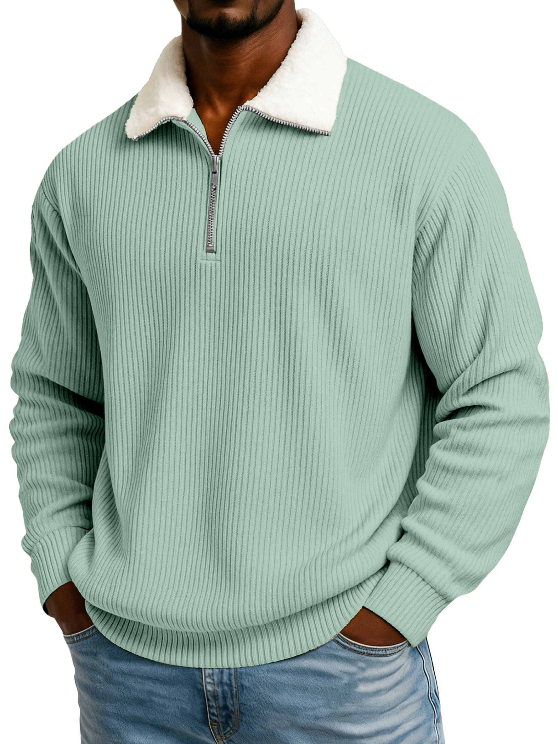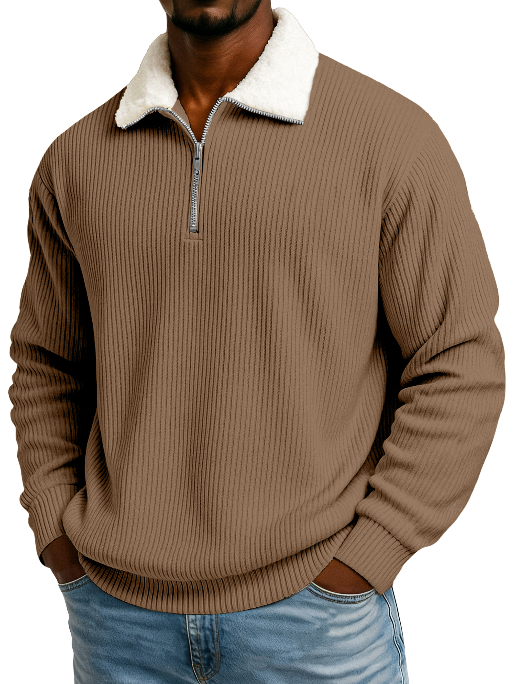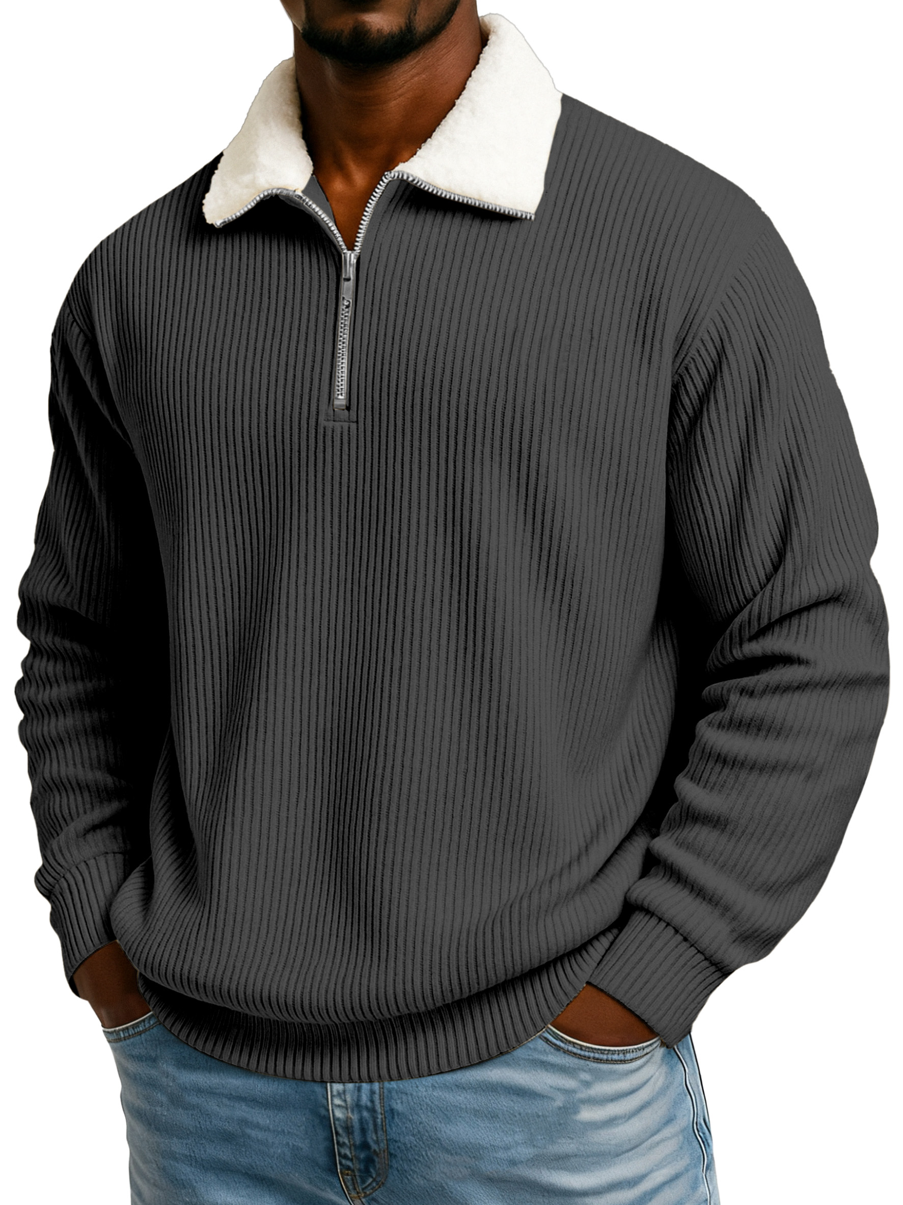 Men's Winter Pit Striped Plush Stand Collar Casual Sweatshirt