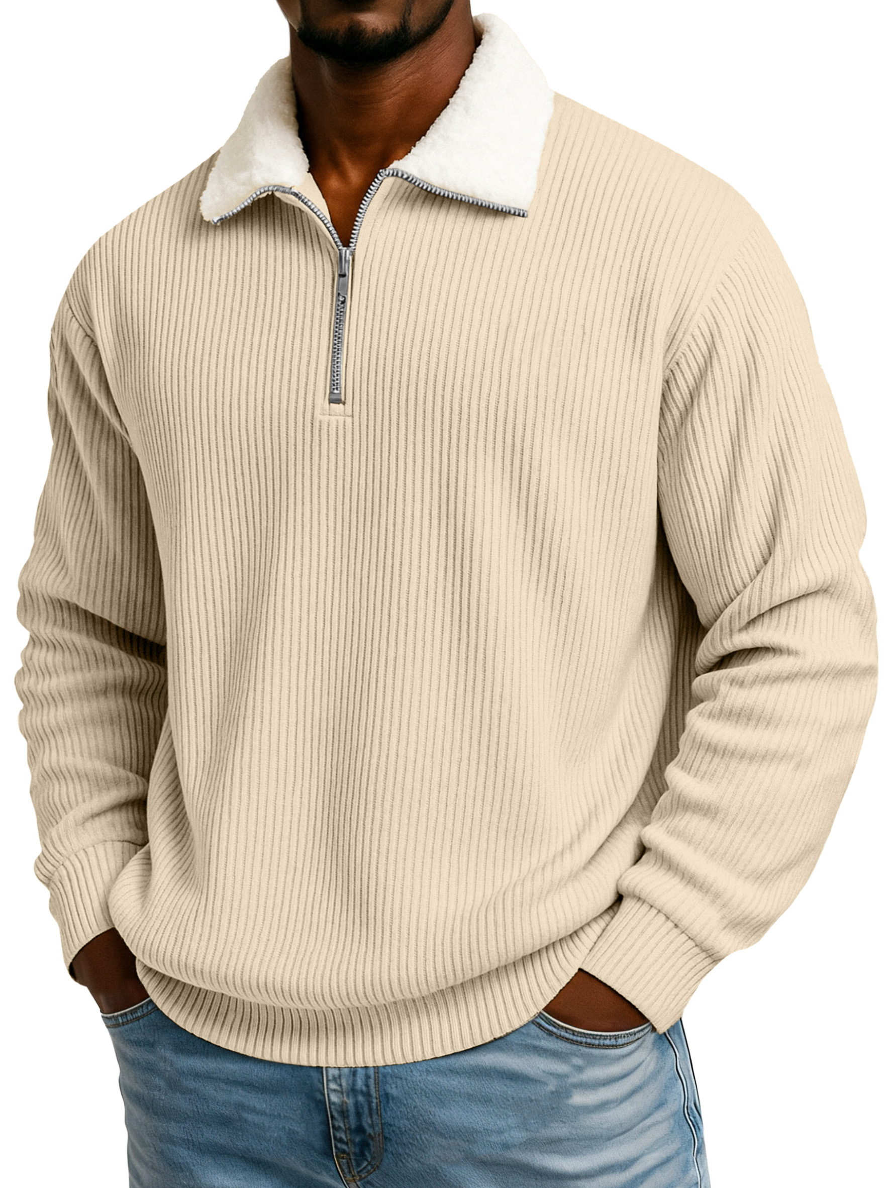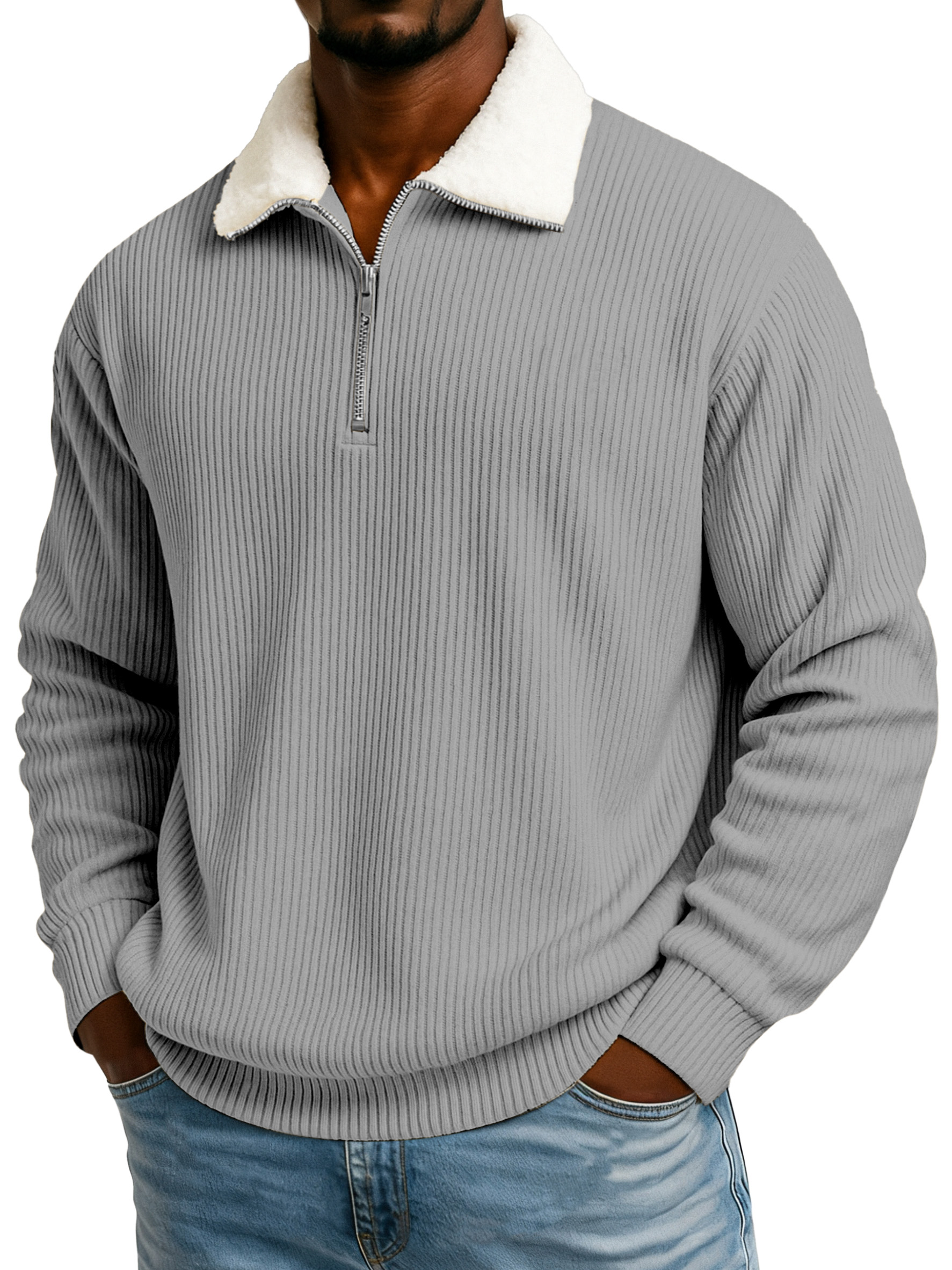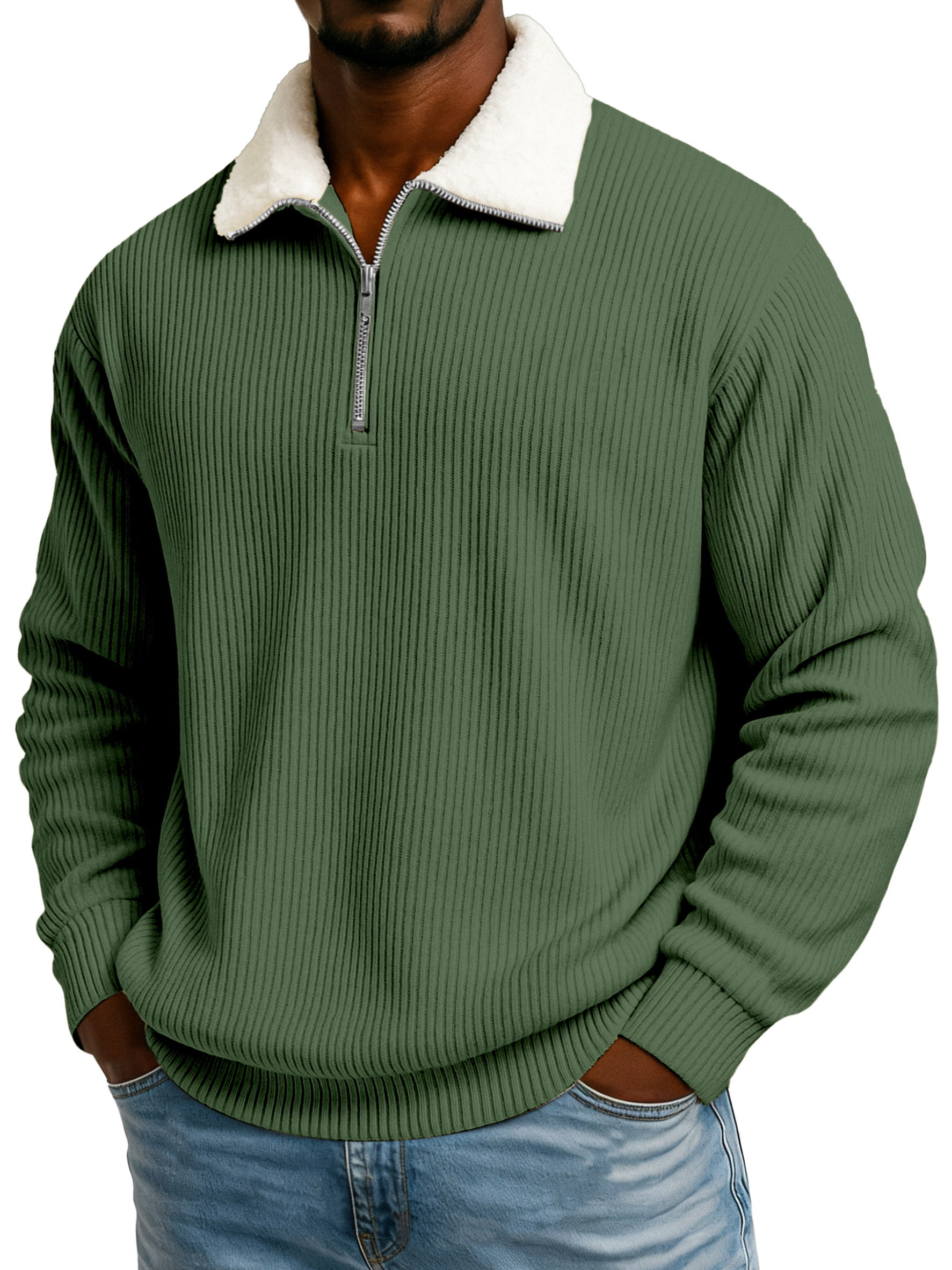 Men's Winter Pit Striped Plush Stand Collar Casual Sweatshirt