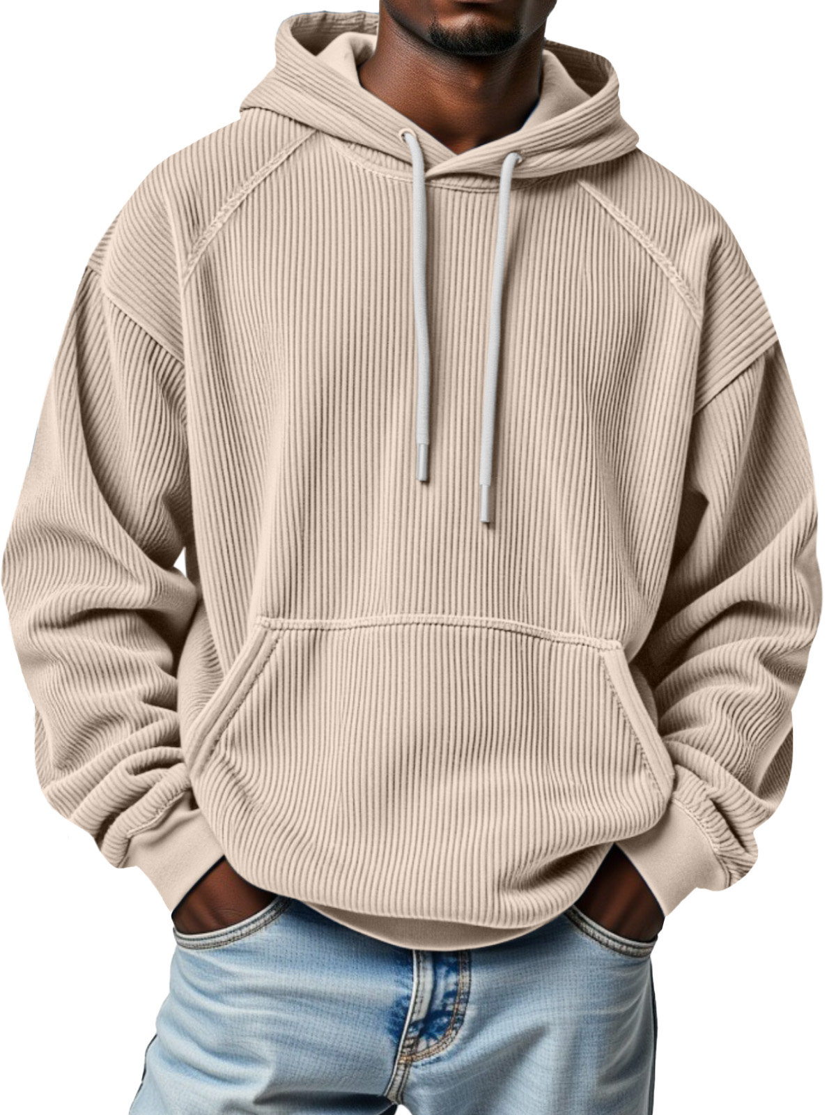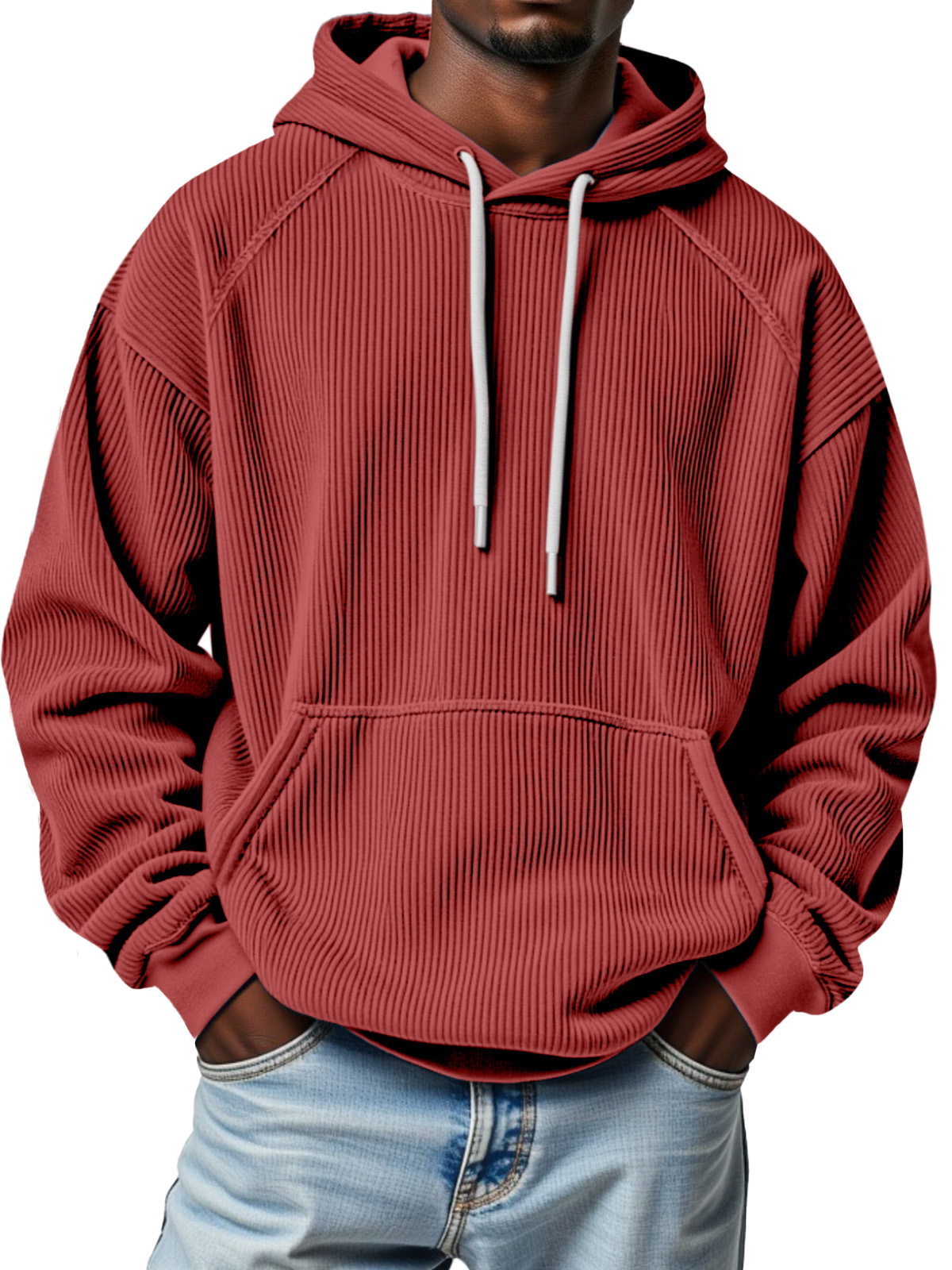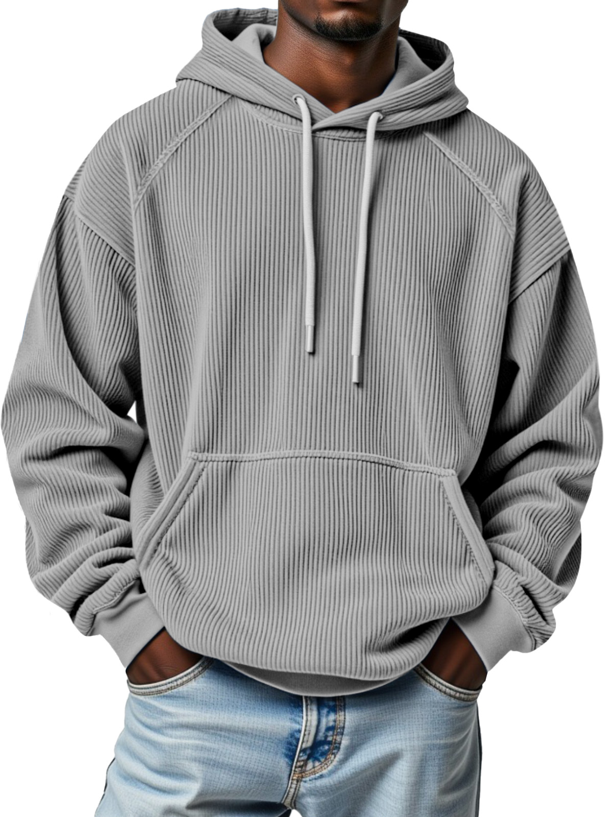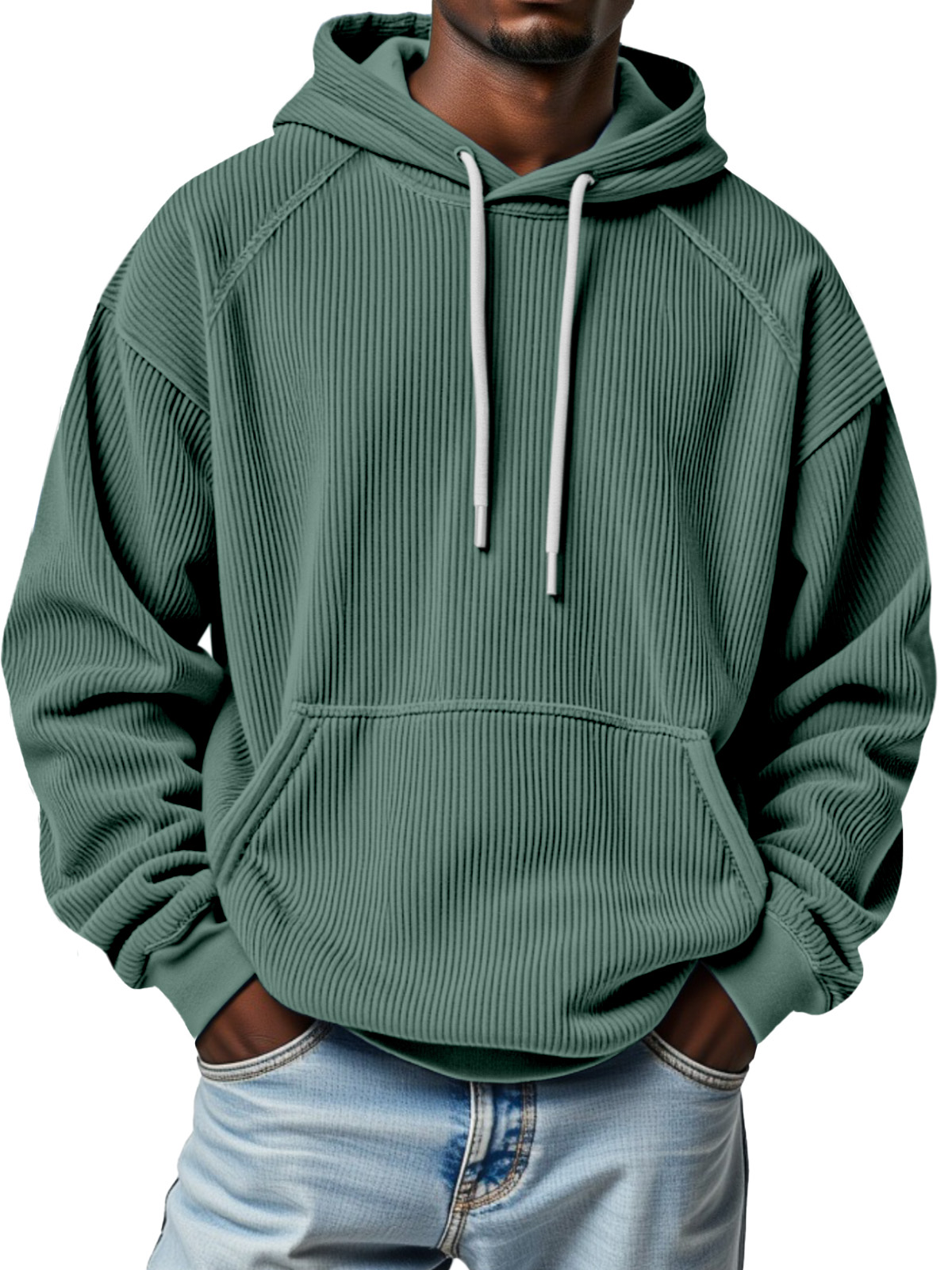 Men's Winter Pitted Raglan Sleeve Design Loose Hooded Sweatshirt