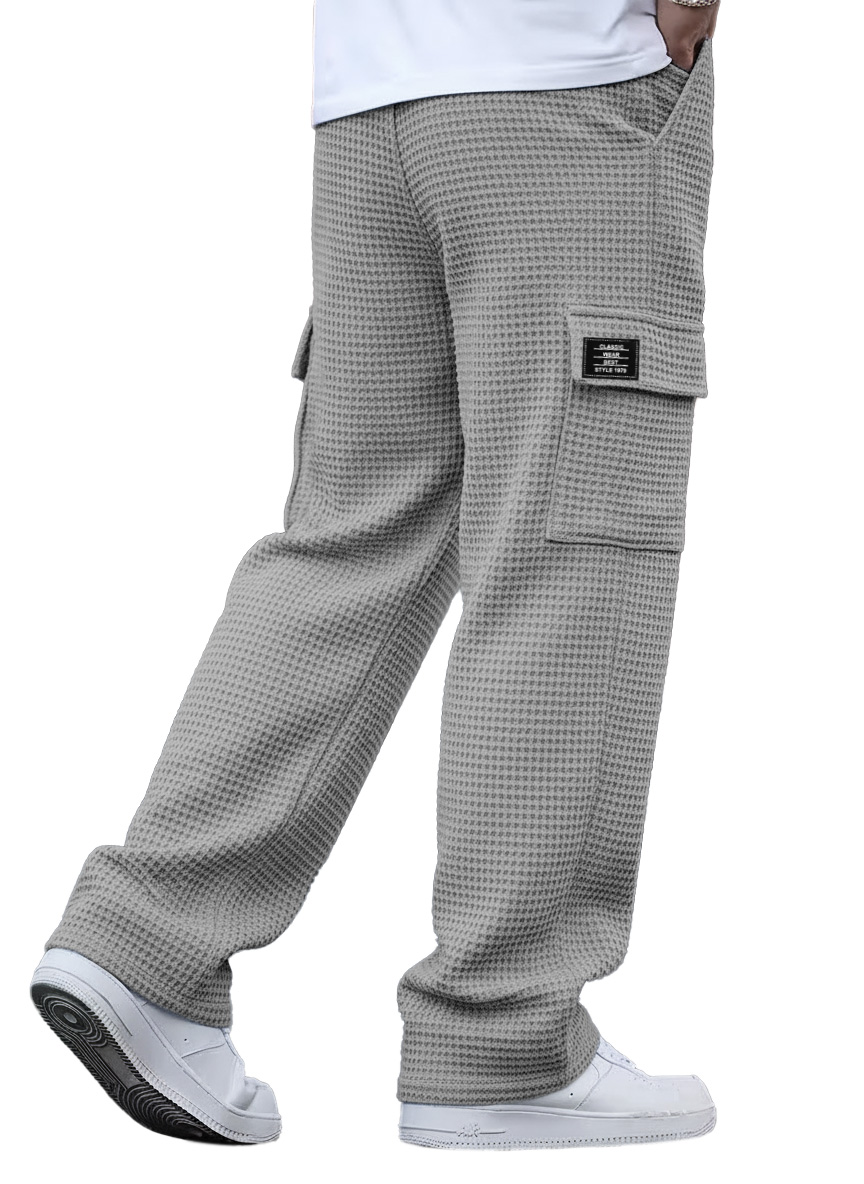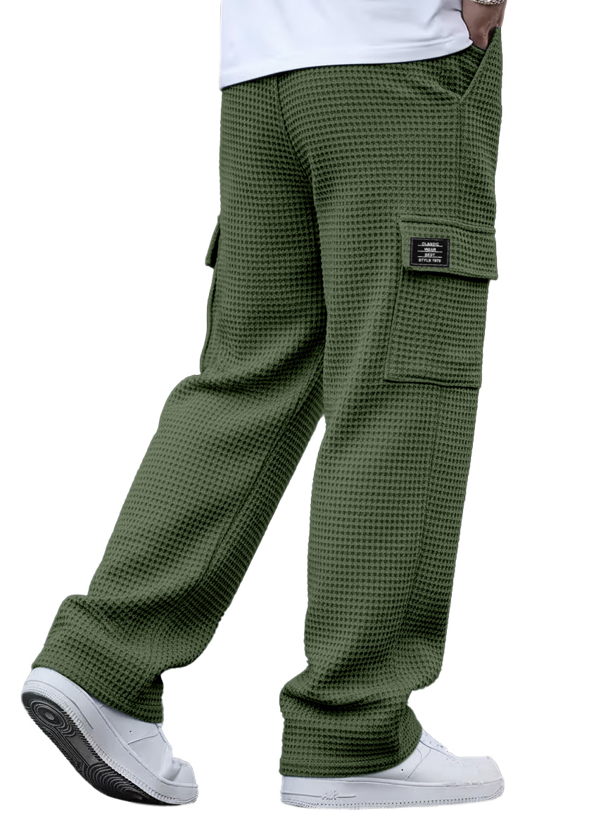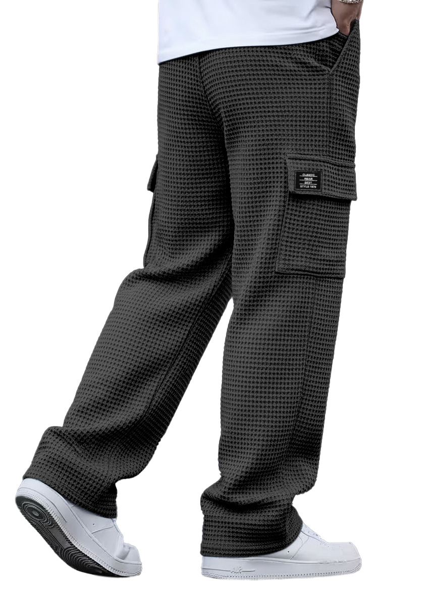 Simple And Versatile Waffle-knit Multi-pocket Loose-fitting Trousers