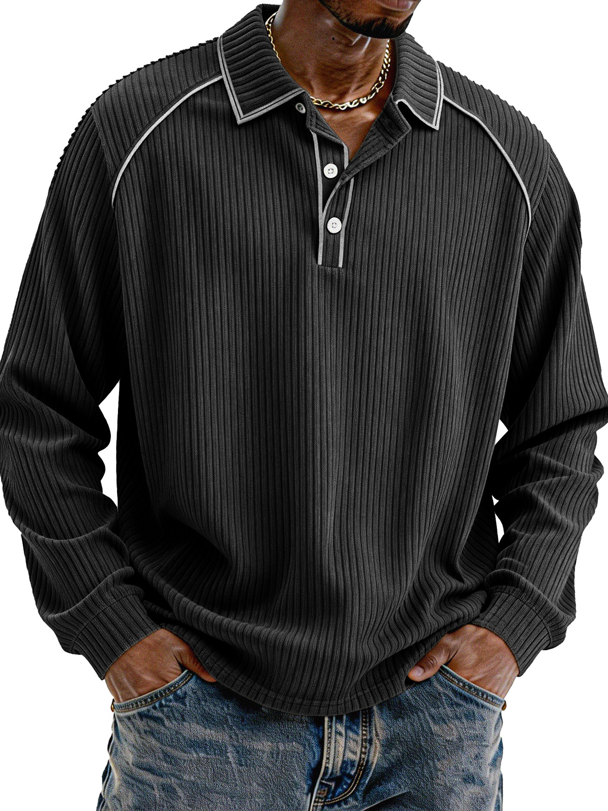 Stylish Casual Loose Corduroy Fabric Lapel Long-sleeved Polo Shirt